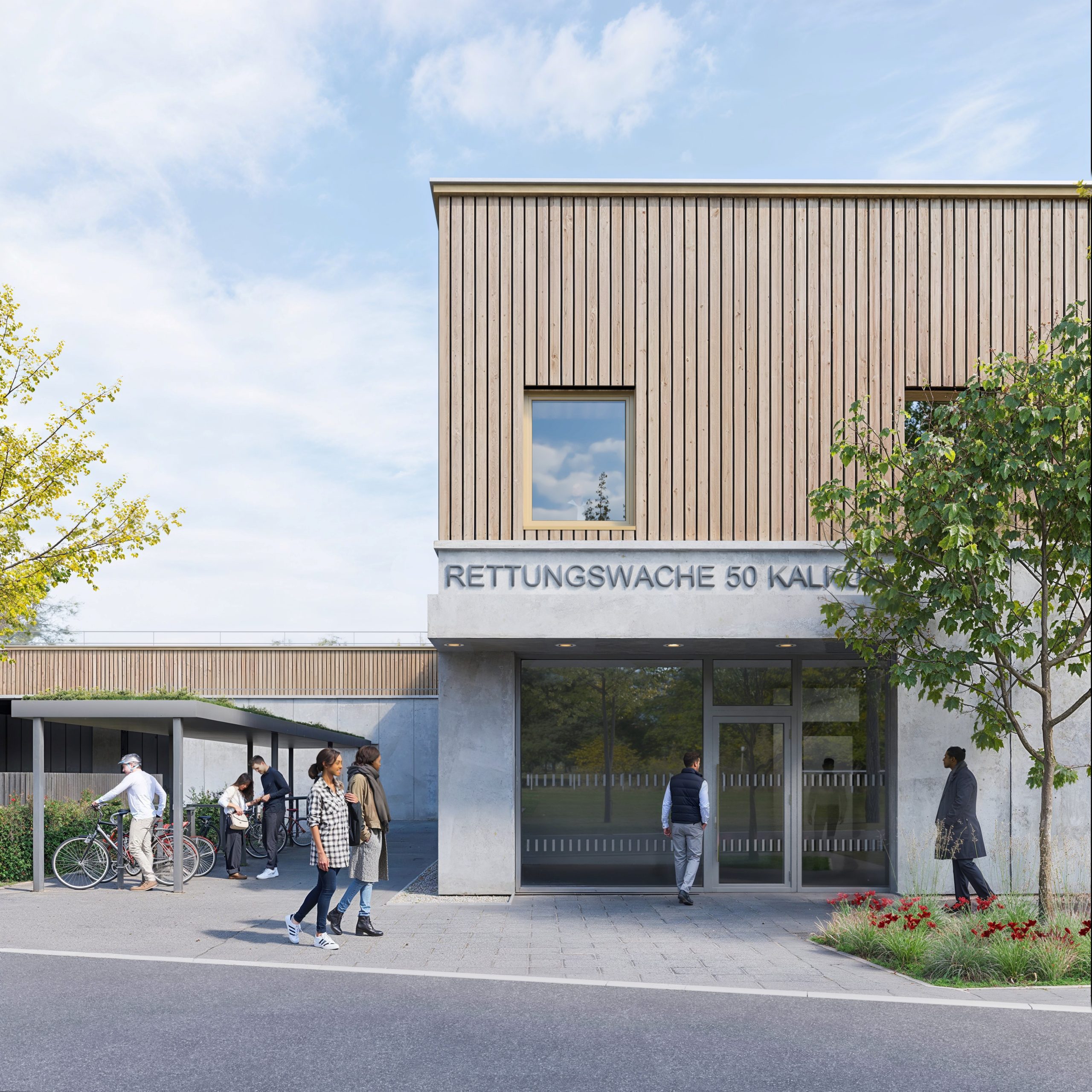 In Düsseldorf-Kalkum wird auf einem bislang landwirtschaftlich genutzten Grundstück an der Kalkumer Schloßallee, Ecke Zeppenheimer Straße, die Errichtung eines Neubaus für die Rettungswache 50 sowie die Freiwillige Feuerwehr Kalkum geplant. Das Bauvorhaben strebt eine DGNB-Gold Zertifizierung an und wird nach Effizienzhausstandard 40 geplant.
